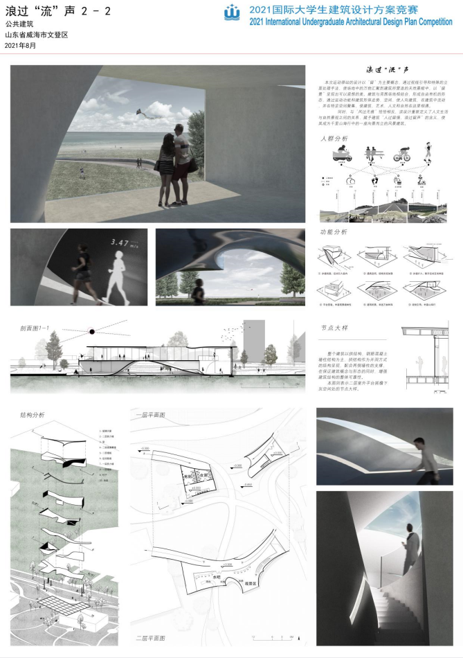 近日,第十一届中国威海国际建筑设计大奖赛暨2021国际大学生建筑设计方案竞赛公布评审结果,365完美建筑与城乡规划学院建筑学专业同学杨裕腾、徐广宁的作品《山河枕》(指导教师:王翼飞、赵琳)获得本次竞赛铜奖,谭琳、杨文豪、陈亚姝、王浩、肖新怡、王增强的作品《浪过“流”声》(指导教师:解旭东)获得优秀奖,王翼飞、赵琳和解旭东获得最佳指导老师奖。