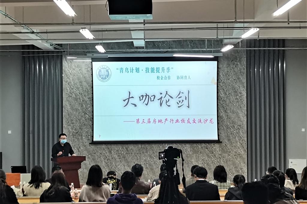 赛后,李洪民、王鹏飞、马莲欣等教师与企业代表、参赛同学共同参加“青鸟计划·技能提升季”之第三届房地产行业校友交流沙龙之大咖论剑。针对房地产行业的发展前景、专业发展前景与本科阶段的学习方向等问题进行现场交流互动。代表们针对同学们提出的“房产企业更看重学生那方面能力、如何才能进入房产企业就业”等问题进行耐心细致的分析与解答,现场气氛热烈。