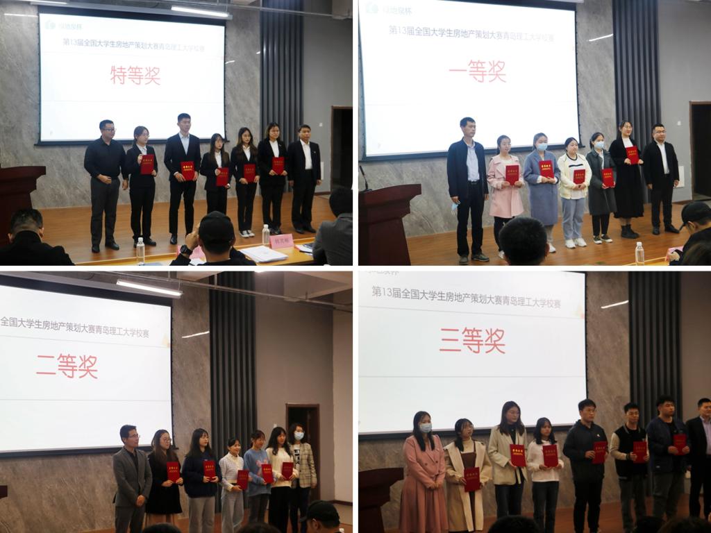近日,由校团委主办,管理工程学院承办,山东绿地泉集团、绿地凤栖澜玥等企业协办的第13届全国大学生房地产策划大赛校内总决赛在嘉陵江路校区C2-3楼G202会议室落下帷幕。经过激烈角逐,比赛评出特等奖5项,一等奖5项,二等奖5项,三等奖5项。3支队伍将代表学校参加2021年12月份的全国总决赛。