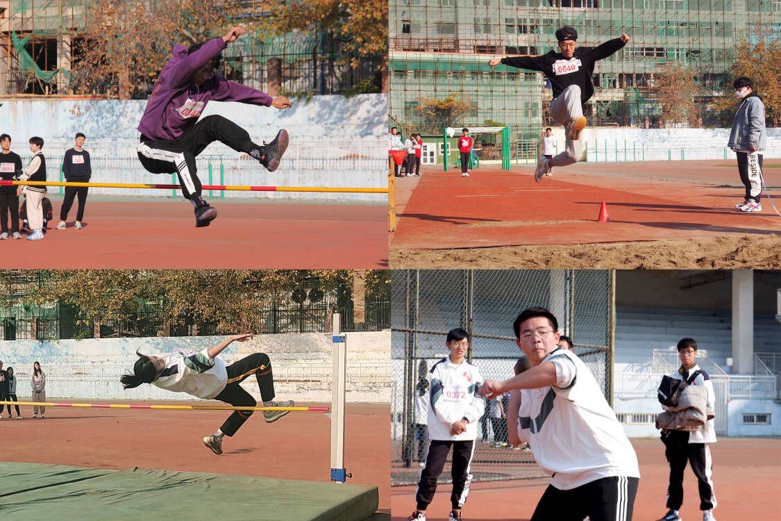 田赛项目同时有条不紊地进行,跳远运动员拼尽全力,起跳、落地,不断挑战自我、超越自我;跳高运动员轻捷地掠过横杆,展开双臂跃向更高的目标;铅球运动员运用全身力量,协调出手速度、角度、高度,铅球跃起一道道优美的抛物线。别具特色的同心鼓比赛作为趣味项目,更为运动会增添了几分乐趣,各班同学团结一心,默契配合,将同心鼓打出节奏,“鼓”动精彩,增强了学生团队合作意识,促进了同学之间的情感交流。
