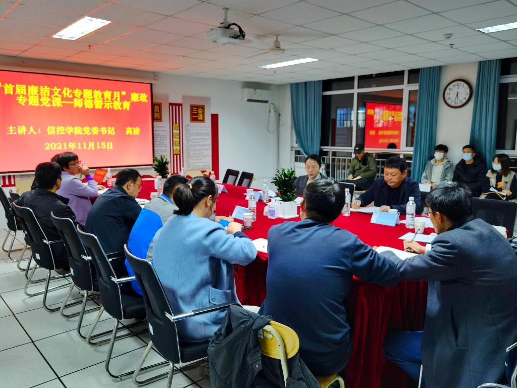 最后,高洁给全体与会党员同志讲授一堂生动的廉政专题党课,以师德师风为切入点,以典型案例为素材,教育引导基层党员干部要立足本职岗位,提高认识,加强自律,崇廉尚洁,防微杜渐,共同营造校园廉洁文化氛围。