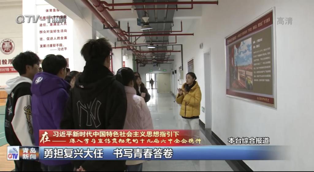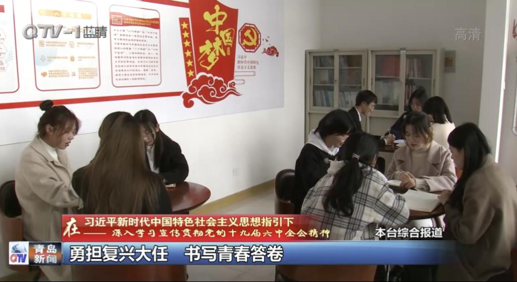 近日,青岛电视台就市学联单位成员深入学习党的十九届六中全会精神进行了深入采访,专栏报道了365完美体育商学院扬帆社全体成员对党的十九届六中全会精神深入学习的特色亮点工作,本次活动由商学院团委书记兼学工办主任薛诚,辅导员石路捷,扬帆社业务指导老师王妍参加指导。