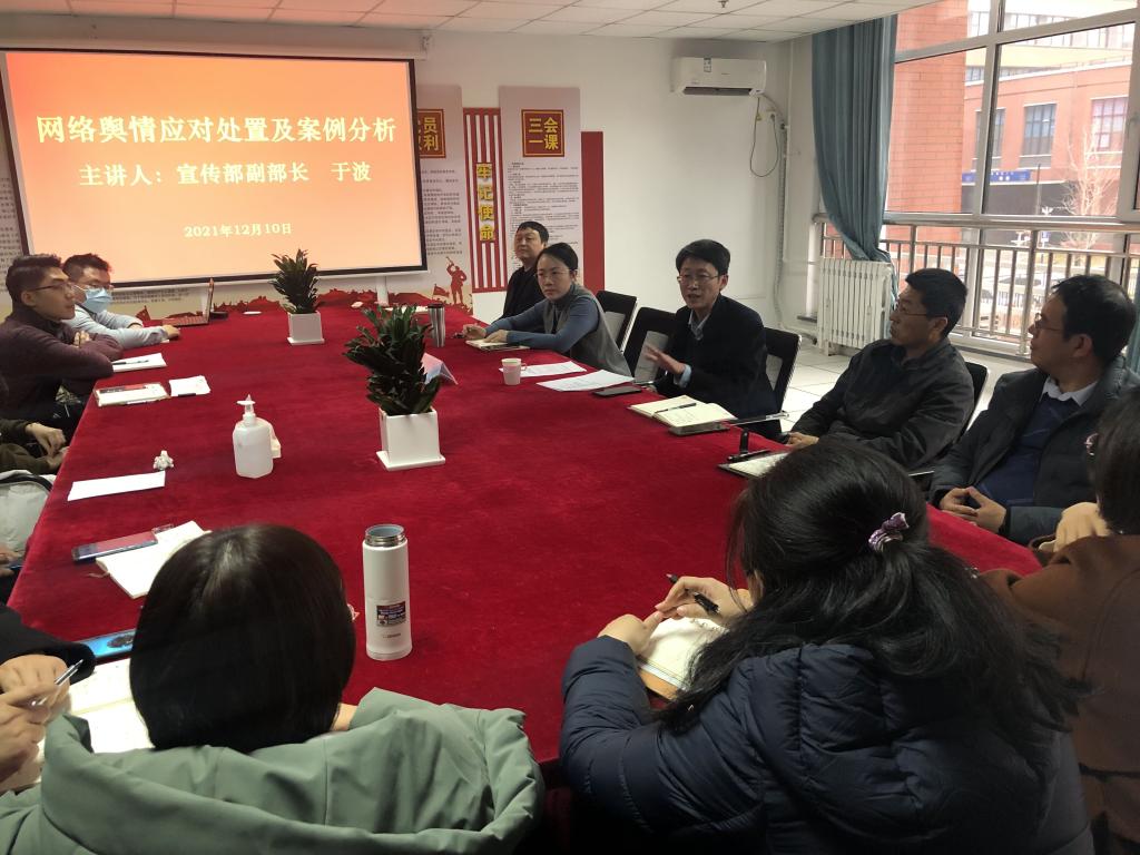 为切实增强基层党务工作人员网络舆情意识,提高舆情应急处置能力,12月10日下午,信息与控制工程学院党委在信控大楼206会议室举行“网络舆情应对处置及案例分析”专题学习辅导,邀请学校宣传部副部长于波担任主讲,党委书记高洁主持,党委委员、各支部书记、支部委员、工会委员参会。