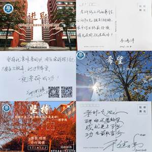 考研倒计时牌上的数字不断递减,学院领导、老师为考研学子写下一封封鼓励信;全体辅导员老师录制了考研加油视频,为学生加油打气;学院物理教研室全体老师,为考研学生定制刻有“成功上岸,绝不言弃!”写有祝福语的巧克力,让考研学子在题海奋战时品尝到丝丝甘甜。学院全体老师用心守护学生成长,用爱助力梦想启航。收到老师们的寄语和祝福后,数学182孟晓琨深受鼓舞:“感谢老师们的祝福,我们会带着这份暖心的爱,全力以赴,不辜负老师对我们的期望。”