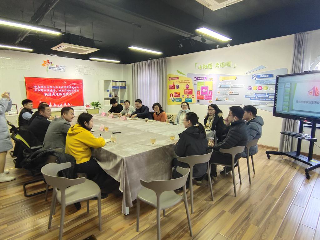 12月22日,土木工程学院与西海岸新区长江路街道办事处峨眉山路社区、三江路社区举行联合党建基地签约仪式在长江路街道办事处峨眉山路社区举行。土木工程学院党委副书记邵先锋、副院长侯东帅、组织员李祥城、长江路街道办事处党工委组织委员牟晓勇主任、三江路社区党委书记陈莹懋、峨眉山路社区党委书记高尧刚出席签约仪式并进行会谈交流。