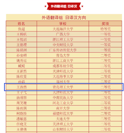 12月25日,首届新时代“人才杯”多语种翻译大赛公布获奖喜报。人外与外国语学院日语专业181班王浩然在外语翻译组中斩获日译汉二等奖、汉译日三等奖各一项,指导教师董世奎获优秀指导教师奖。