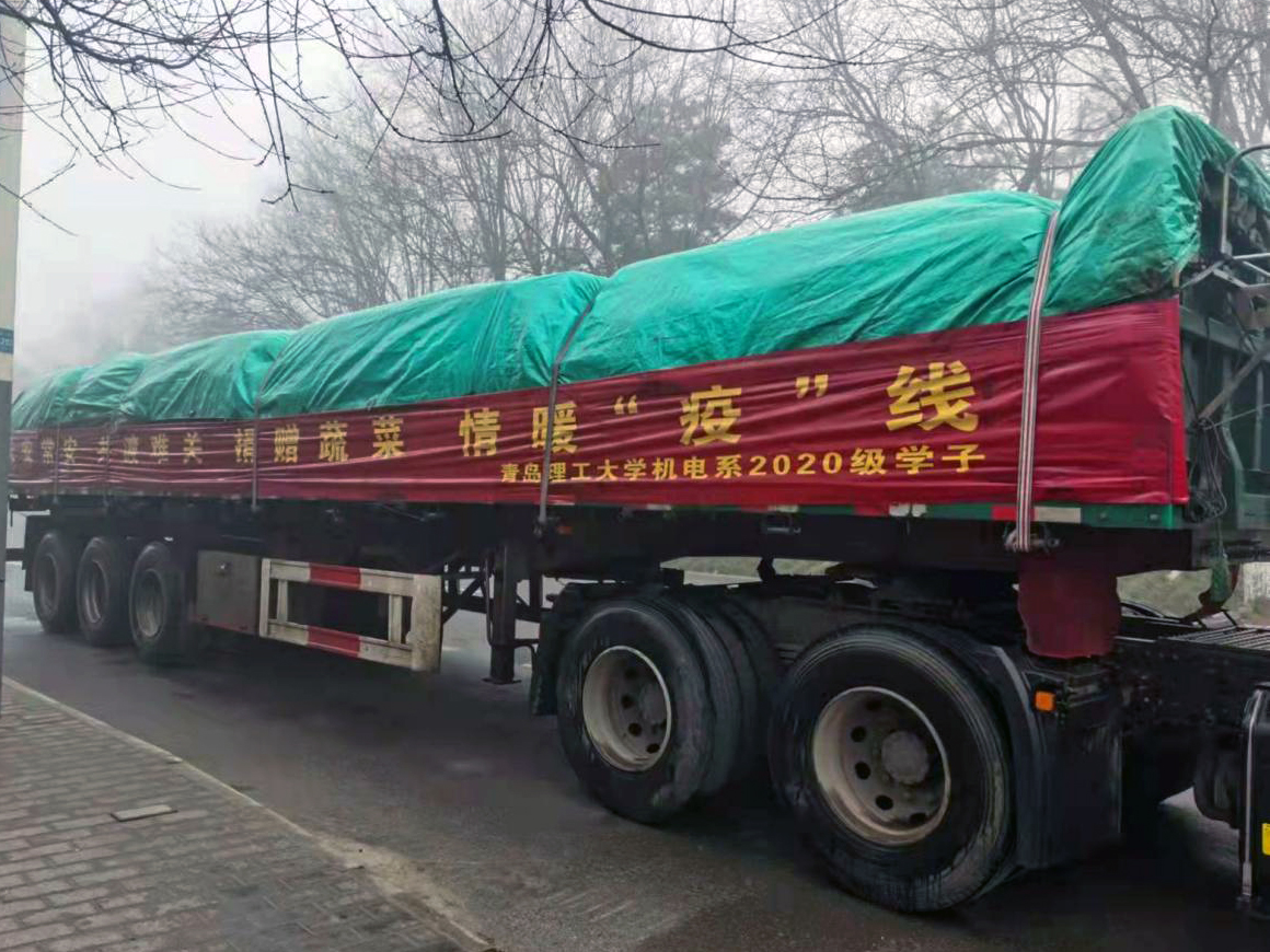 事情还要追溯到2021年12月23日,临沂校区电气工程及其自动化专业202班宋鹏宇正在青岛参加2022年硕士研究生专业考试,备考期间他得知曾经就读的西安职业技术学院因为疫情封校,在完成考试后的第二天,他与父亲宋涌取得联系,表达了对西安母校老师、同学们的担心,提出了想为学校做点事情,帮助他们度过难关的想法,父亲听后非常赞同。于是,宋鹏宇委托父亲在济宁市泗水县购买了30000余斤白菜、大葱、胡萝卜等时蔬。在所有准备工作结束后,2022年1月8日下午,父子两人驱车800多公里连夜赶赴西安,在确保各项安全检测合格的前提下,将物资平安送到了西安职业技术学院。