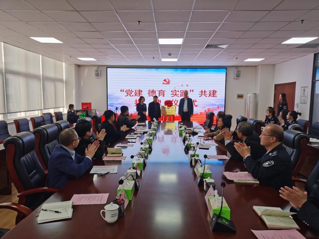 1月12日,管理工程学院党委与青岛市生态环境局西海岸新区分局机关党委、青岛华世洁环保科技有限公司党支部共同举行“党建德育实践”共建基地揭牌活动。学院党委书记李洪民,青岛市生态环境局西海岸新区分局党组书记、局长田向东,青岛华世洁环保科技有限公司党支部书记李玉华等相关领导共同为“党建德育实践”共建基地揭牌。西海岸新区党史学习教育第八巡回指导组副组长丁肇峰同志、组员姜春丽同志作为见证人出席本次活动,活动由青岛市生态环境综合行政执法支队黄岛(西海岸新区)大队三级高级主办董淑勤主持。