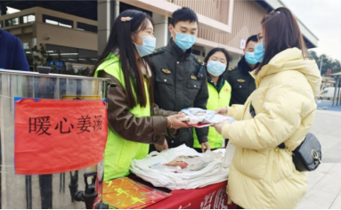 土木197班刘航同学积极参与了所在社区的2022暖冬行动。每日上午,在渝湘高速公路大观服务区内,向往来旅客派发春联、口罩、药品、防疫宣传册等物品。暖冬行动结束后,刘航又积极参与到春运、社区防控、安全排查等工作中。
