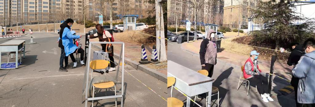 在本次春季开学志愿者中有4名“特殊”的“青小鲤”,他们是来自理学院专业物理、专业数学、制图、力学四个教研室的郭帅、刘奕辰、王勇、王壮壮4名专业教师。尽管本来并没有他们的工作安排,但他们主动响应学院号召,积极报名以“青小鲤”志愿者的身份加入。穿着简易的防护服,副教授刘奕辰从一大早就不停忙碌着,指导返校学生开展身份核验、维护路障设计等,顶着黄岛5级的大风,刘奕辰笑道“发型乱了,但爱护学生的心没乱!”