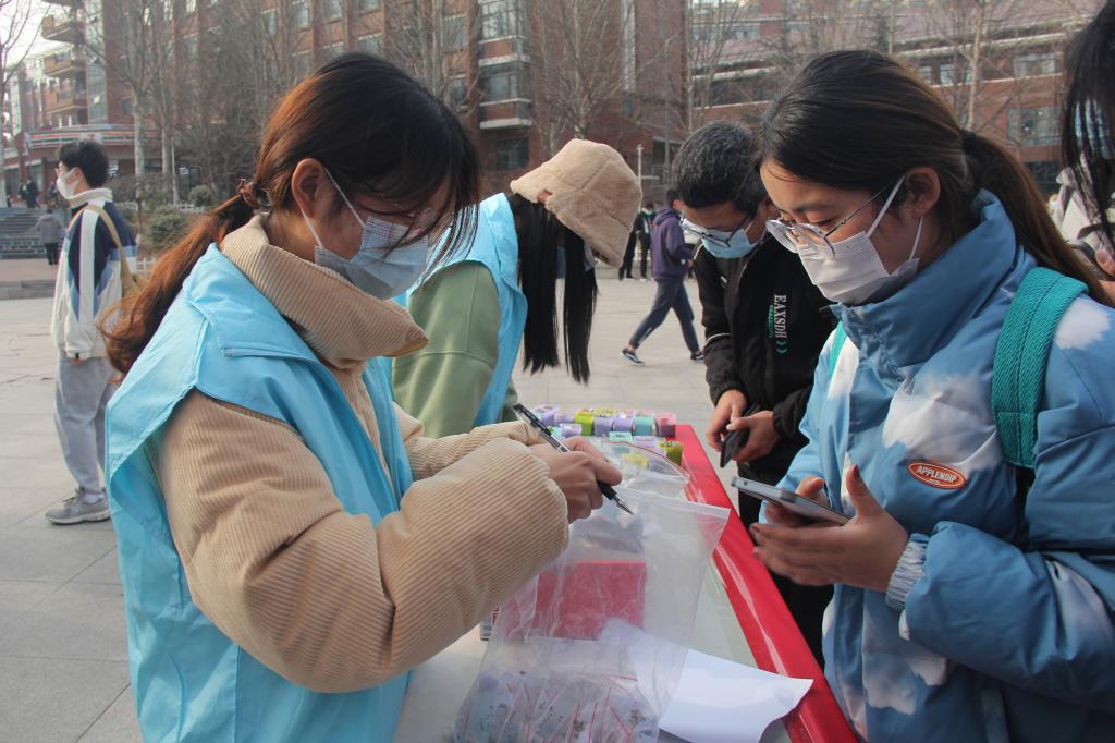 活动开始前,环保志愿者协会的成员们买种子、扫现场、搬桌子、运土壤、送绿植……并按照疫情防控的要求设置引导员,负责引导同学们保持一米以上安全距离。在东区公寓和西体育场的活动现场,同学们情绪高涨,陆续到达领取点并在引导员的帮助下领取绿植、种子以及土壤。在领取时,志愿者将种子递给同学们,并为同学们详细介绍了每种绿植的种植方法和注意事项,同学们也在现场互相分享自己之前培养绿植的经验:“不能浇太多水,要时常晒太阳但不能长时间暴晒……”点点建议宛若滴滴雨露,滋润着手中的绿植茁壮成长。