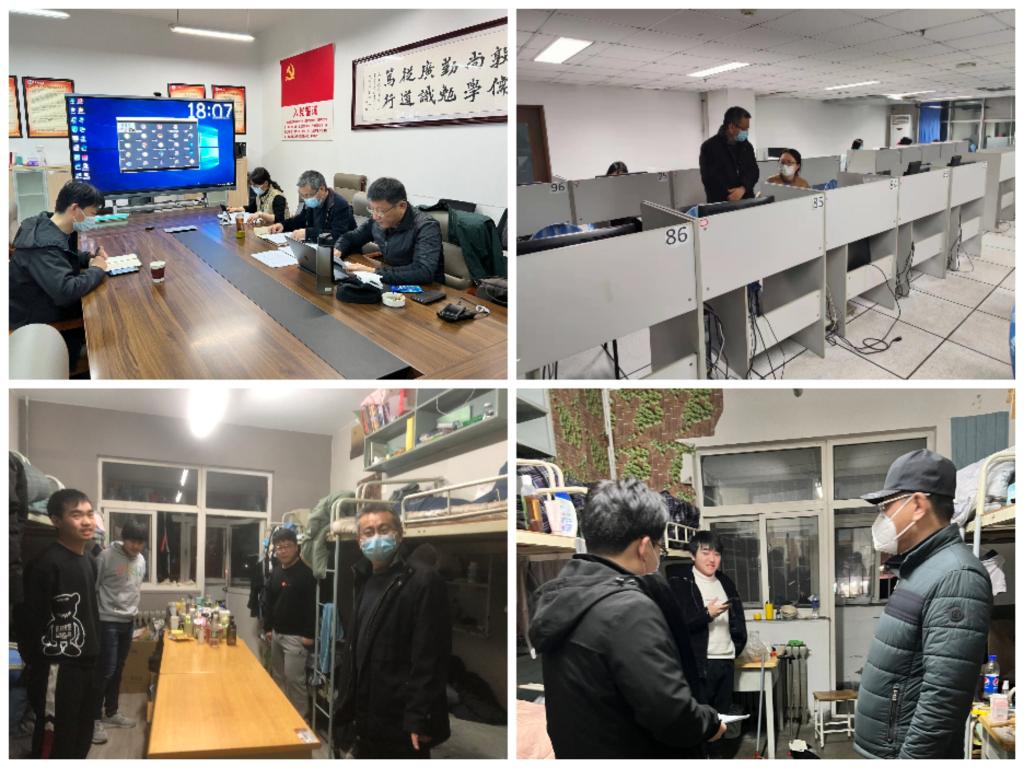 强化组织领导,提供有力保障。学院安排分管领导和教学督导实时督导线上教学质量,对线上课堂随访听课。学院党委书记肖学斌、院长许从宝、副书记纪玉超、副院长解旭东、副院长朱一荣,每日坚持深入教室、宿舍、图书馆进行巡查慰问,详细了解同学们的生活情况、在线学习状况和学习效果等,全力保障学生教学、日常生活。叮嘱学生“加强防护,安心学习,就是最好的抗疫。”