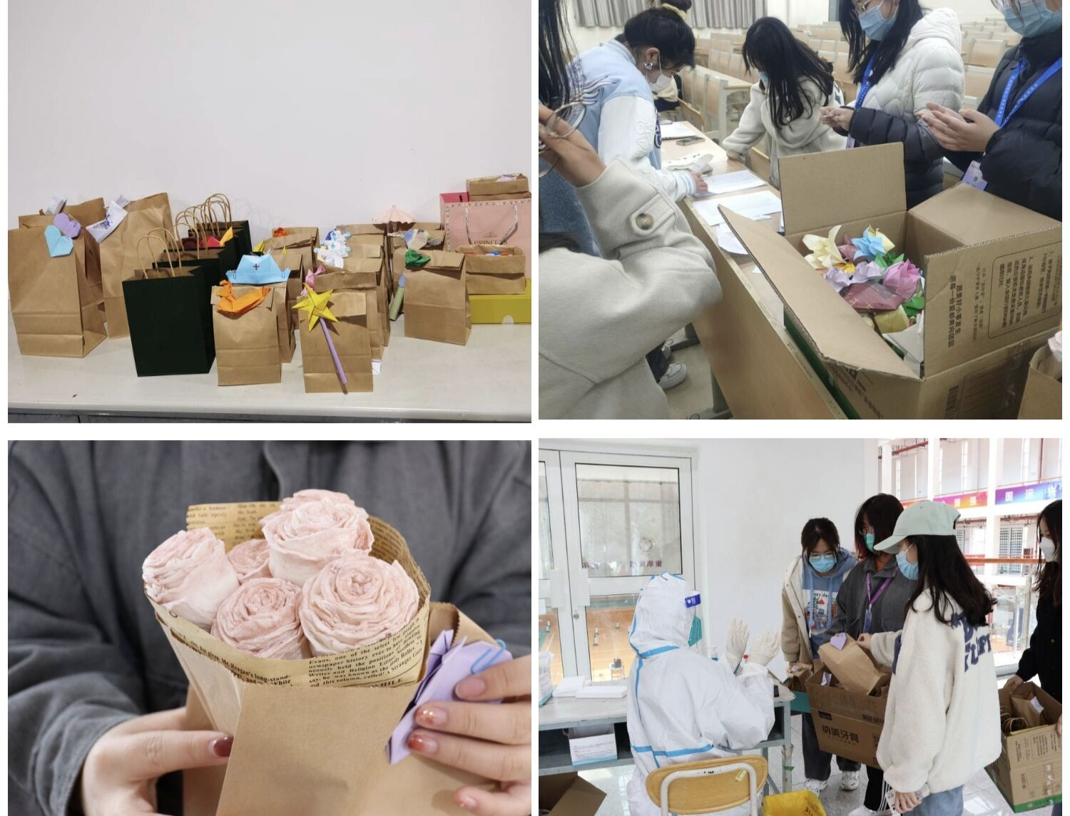 自疫情发生以来,医务工作者不辞辛劳,加班加点,校内外师生志愿者们也积极行动,组成党员、团员“突击队”,参与到疫情防控中来,为校园生活的安全有序提供了保障,同学们看在眼里,记在心里。当前,疫情防控形势稳中向好,为感谢医务人员和师生志愿者的辛苦付出,环境与市政工程学院学子们来到核酸检测点、校医院,通过赠送手写感谢信,手工玫瑰花、百合花等形式表达对疫情防控工作人员的感谢。
