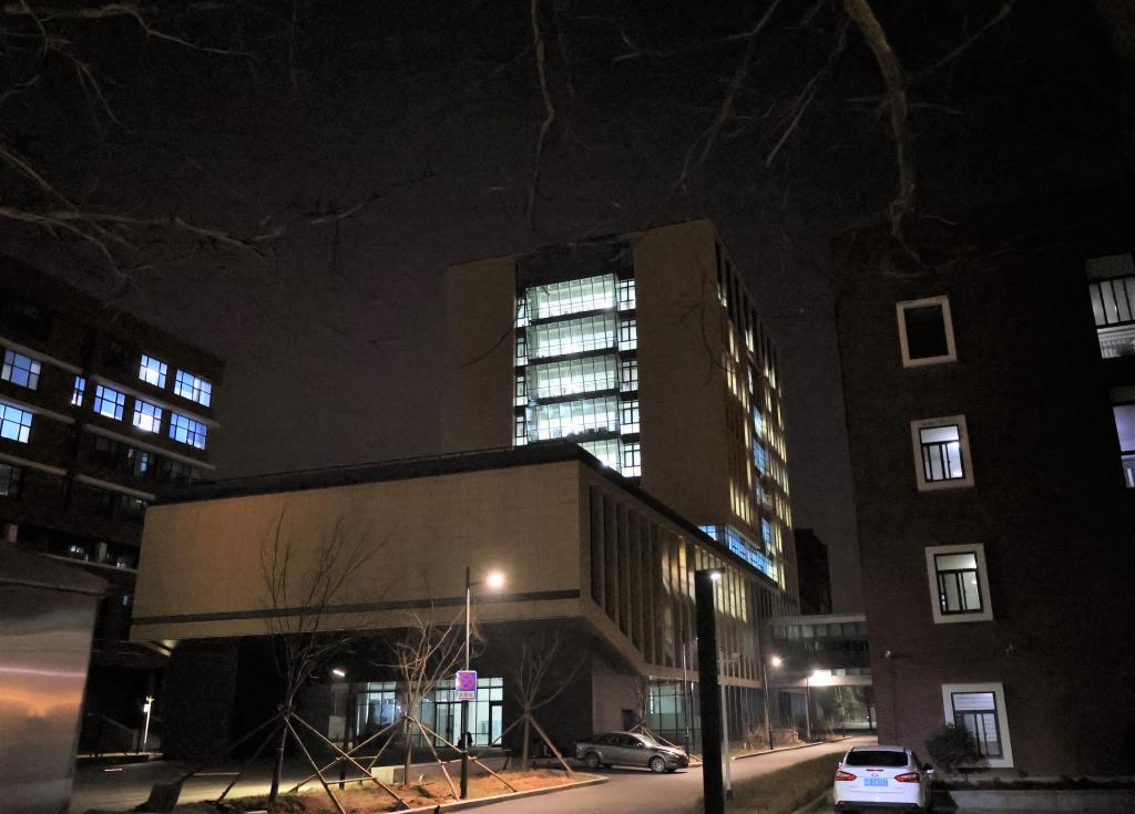 星夜灯火下的办公楼