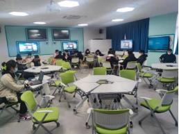 革新教学模式助学风。在已有线上教学经验基础上,学院不断总结经验教训,持续改进,积极探索新的教学模式。学院充分利用学校智慧教室开展部分课程的线上教学工作,人性化的桌椅布置、超多屏幕布局、高清视觉听觉享受,打破了传统的“一言堂”教学,变为新兴的小组合作模式,通过现场讨论、汇报展示等方式,让教师与学生的互动更加通畅。