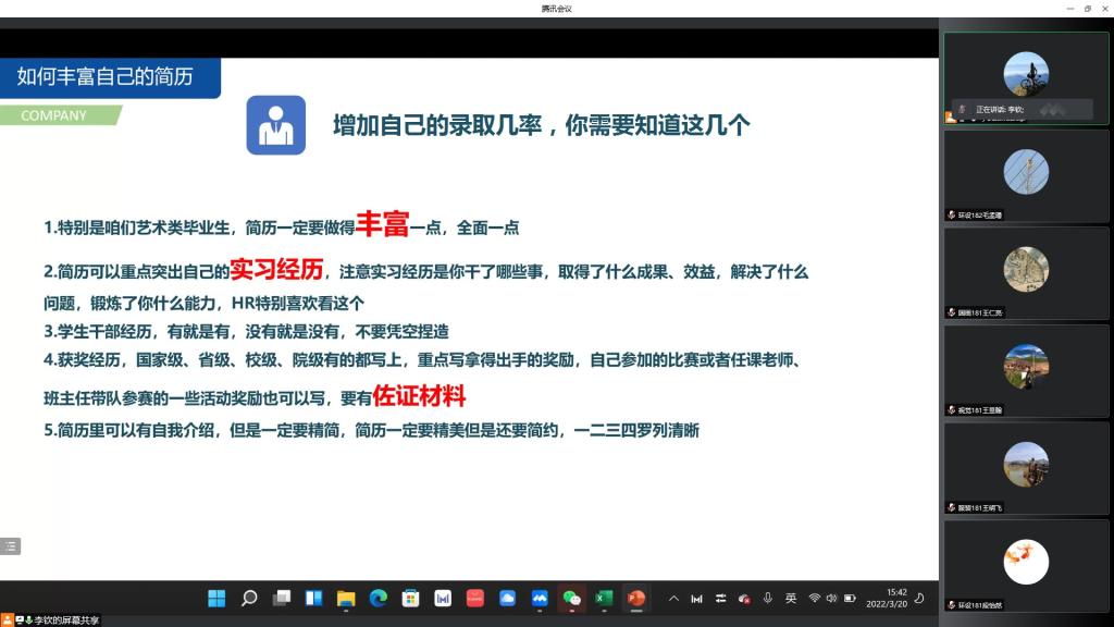 找准“疑惑点”,讲座明方向。学院通过腾讯会议举办2022届毕业生考研复试与调剂指导讲座。学院学工办主任张恬主持讲座,她强调,通过考研初试的同学“行百里者半九十”,考研复试和初试同样重要,只有认真准备,足够重视才能有效提升录取成功率。2018级辅导员李钦以自身经历为例,结合考研经验,围绕复试基本信息、调剂情况、复试范围、面试细节及心理素质等方面进行全面细致地讲解。他提醒同学们要坚持复习专业课、注意调剂规则,以良好心态准备考研复试调剂。同学们纷纷表示通过此次指导讲座对考研复试有了更深刻的认识,更加明确了复试面试的准备方向。