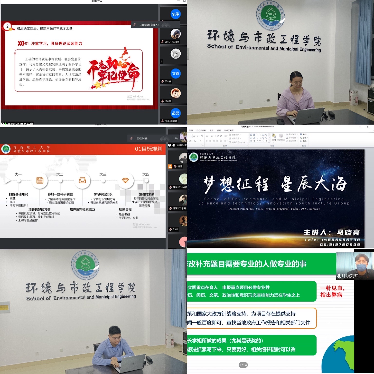 云端相约——分享所思所悟。4月2日,环境与市政工程学院青春宣讲团开讲,各位宣讲员结合自己的大学经历,在坚定理想信念、大学学习方式方法、科研实践、志愿服务、文体活动等各领域展现自己的经验和心得,希望同学们从现在开始严格要求自己,在学习、生活、工作中敢为人先,争做先锋。志愿服务宣讲员陆继哲说,从大一开始接触志愿服务活动,这大学四年的经历,给了我力量去发光发热,也结识了很多志同道合的朋友,现在,我想把这些体悟分享给更多的学弟学妹,找到自己前进的方向,一起加入到志愿服务的行列中,做新时代追梦人。