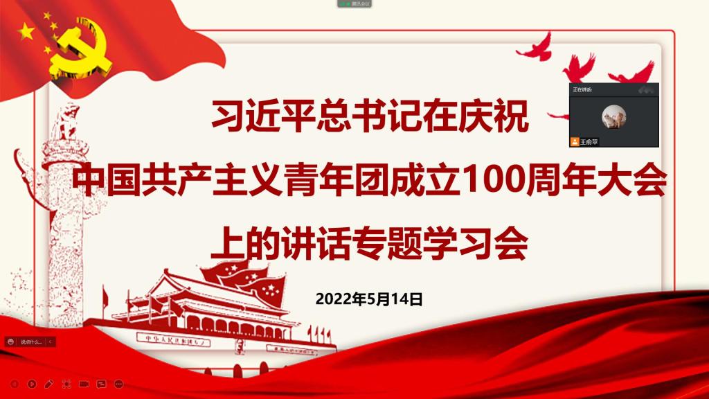为深入学习习近平总书记在庆祝中国共产主义青年团成立100周年大会上的讲话精神,5月14日下午,管理工程学院利用腾讯会议平台组织“学习习近平总书记在庆祝中国共青团成立100周年大会上的讲话精神”集体学习,学生第二党支部书记张冯冯、宣传委员郭纯孜、组织委员王俞苹及60余名青年党员代表参加。