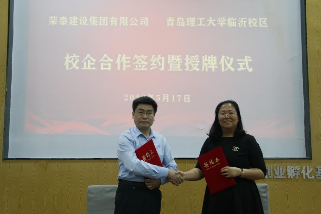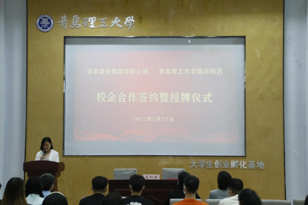 为充分整合校企双方的资源优势,积极探索产教融合的育人新模式,5月17日,临沂校区与荣泰建设集团有限公司举行校企合作签约暨授牌仪式。荣泰建设集团有限公司集团副总经理王亚琴,临沂校区党委副书记李国涛,集团人力资源部经理高超,临沂校区学生工作部主任刘宗庆,相关部门负责同志及学生代表参加活动,会议由校区土木与建筑工程系党总支副书记张晓华主持。