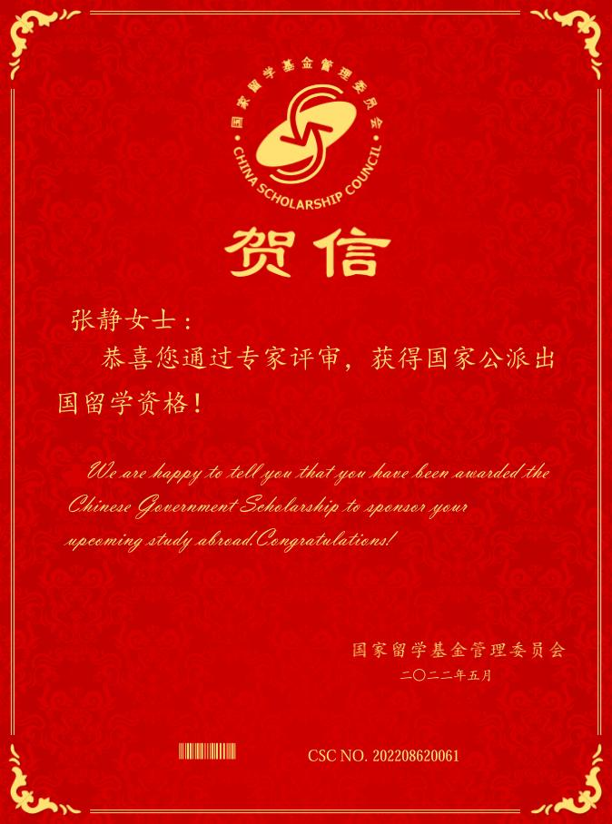 此次365完美张静同学喜获国家留学基金委资助是学校教育国际化的又一可喜成果。