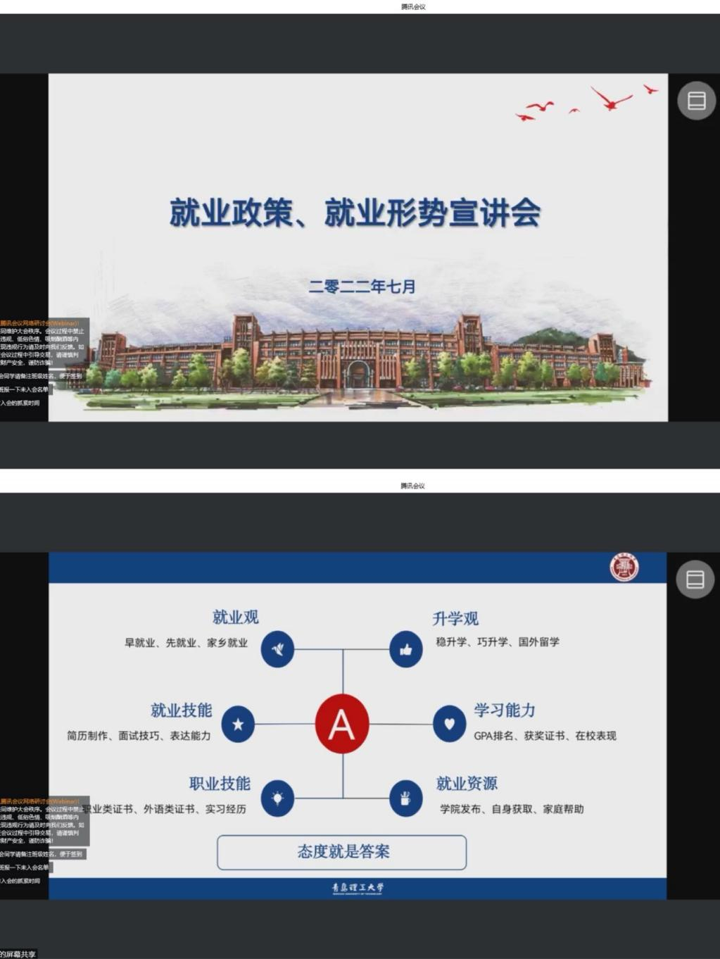 明晰形势,做好就业政策解读。7月12日下午,商学院线上召开2023届毕业生就业形势与政策宣讲会,就当前大学生有关就业情况对学生进行知识普及,并对其做具体讲解、剖析,学院团委书记兼学工办主任薛诚,就业辅导员孙楚分别为毕业生进行就业指导,学院2023届全体毕业生参加了本次会议。会上,薛诚对当前我国就业形势以及就业类型做具体解读,他指出,近几年普通高校毕业生人数持续上升,规模、增量数次创历史新高,要端正就业观、升学观,提升职业能力、就业技能,为毕业生“出招支招”。孙楚在会上为学生们提供具体应对策略,她提出,严峻的就业形势要求学生积极展现学生个人的自主学习能力,并要实时关注就业信息网站,从中获取相关就业信息。宣讲会为应届毕业生分析了当下就业形势特点,耐心讲解了同学们在就业过程中可能遇到的问题,深入浅出、干货满满,收到了与会同学的“点赞好评”。