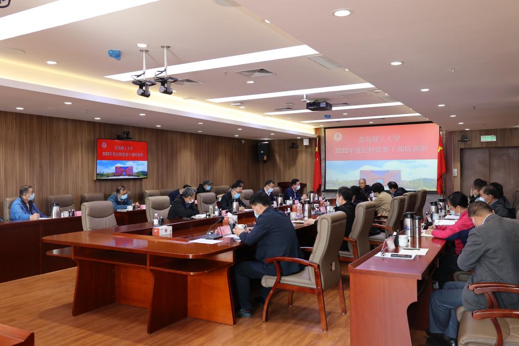 根据学校2022年度纪检监察干部培训班安排,应学校纪委(监察专员办公室)邀请,10月27日上午,青岛市黄岛区纪委监委第三纪检监察室主任程超来校为培训班授课。学校全体纪检监察干部参加培训;各二级党委(党总支)纪检委员跟班旁听。培训会由纪委副书记冯英豪主持。
