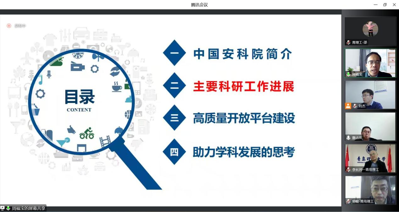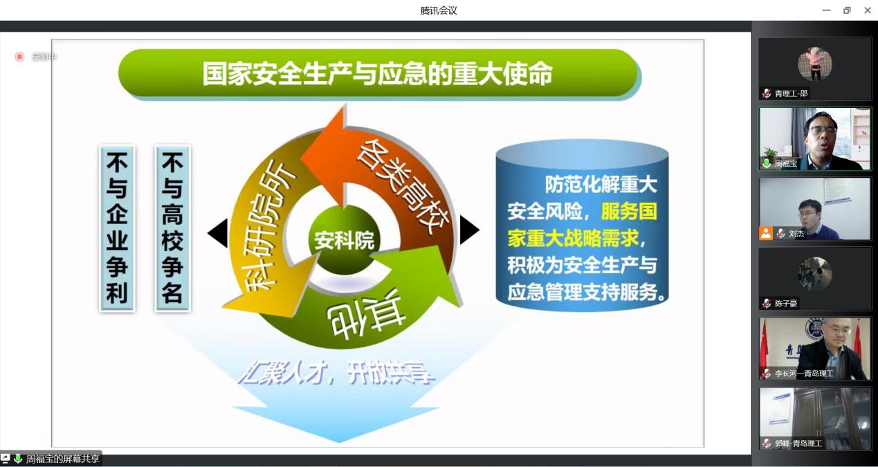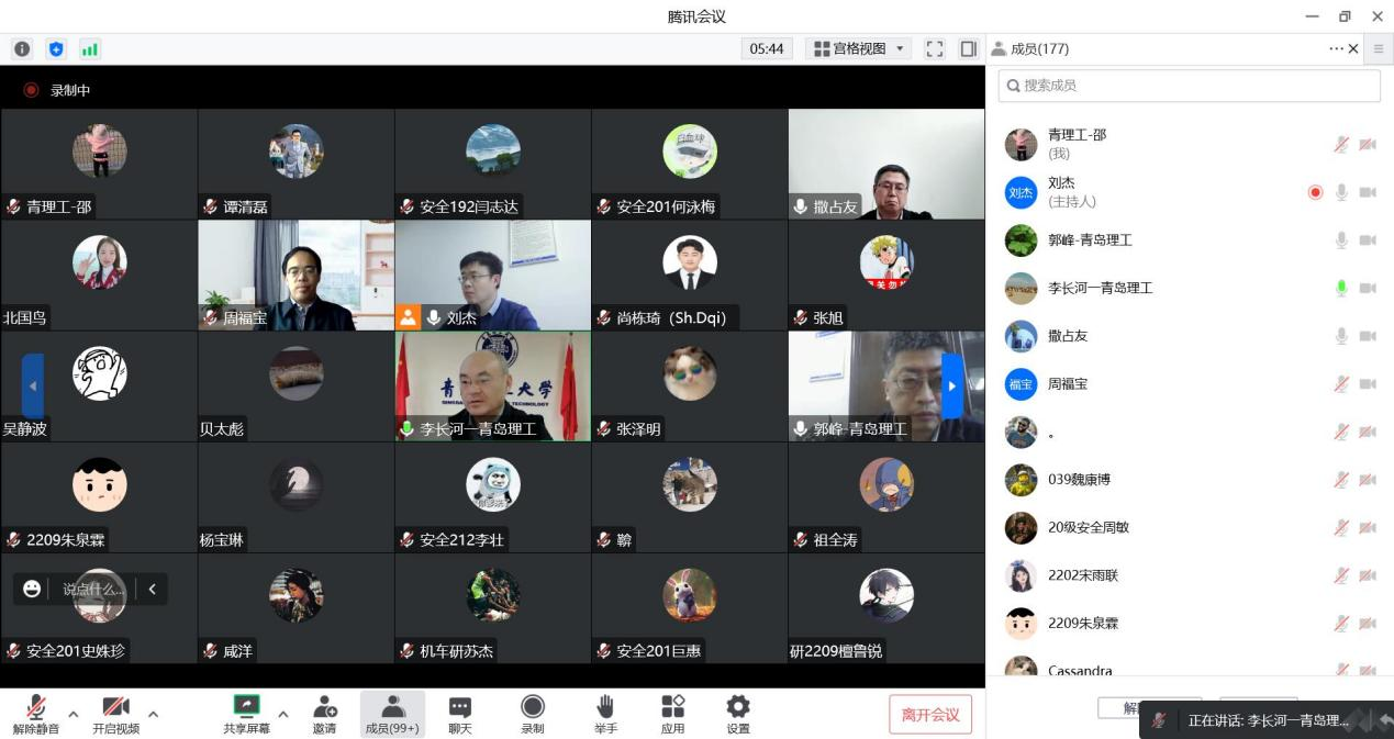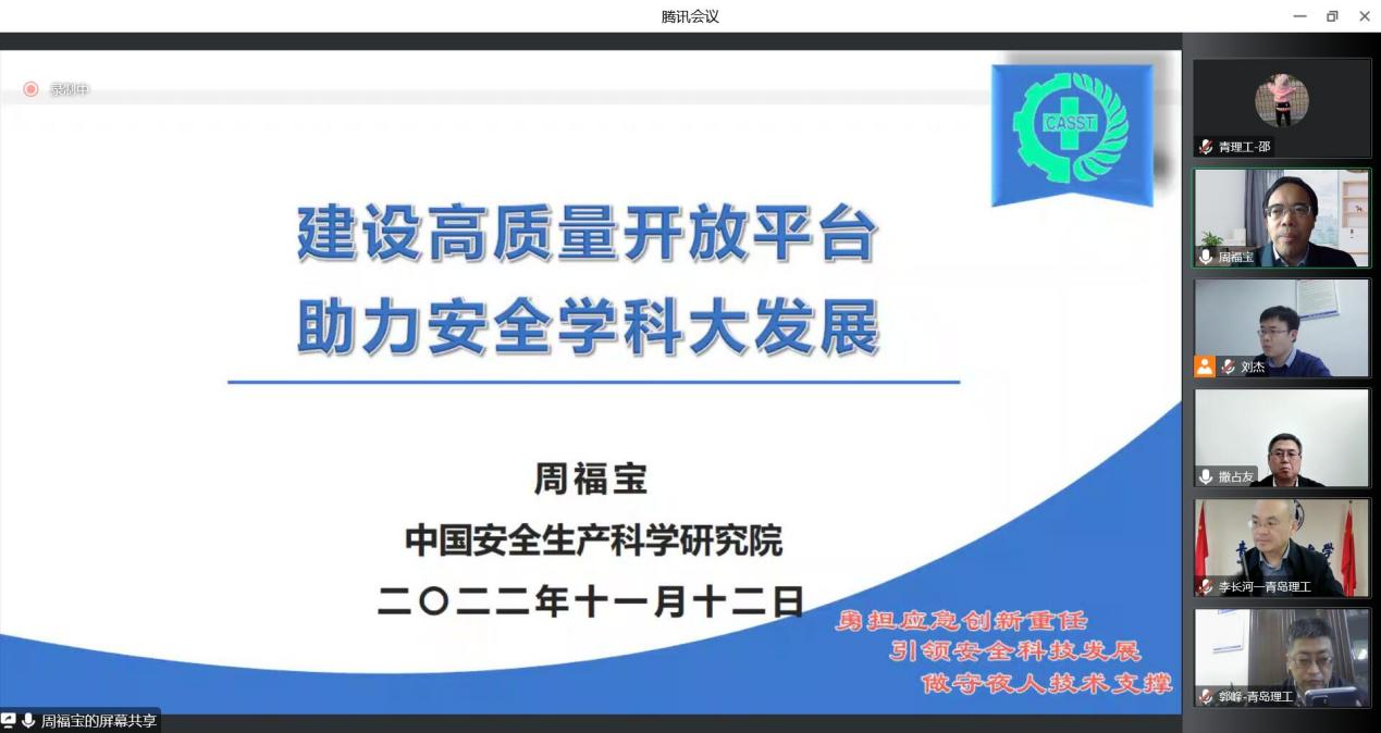 为进一步推动学校安全科学与工程学科高质量发展,11月12日下午,中国安全生产科学研究院院长周福宝教授应邀作了题为《建设高质量开放平台,助力安全学科大发展》的专题报告,党委常委、副校长李长河教授主持会议并讲话,机械与汽车工程学院院长郭峰教授、副院长刘杰副教授、安全科学与工程学科专业负责人撒占友教授以及任课教师、研究生和本科生代表200余人线上参加会议。