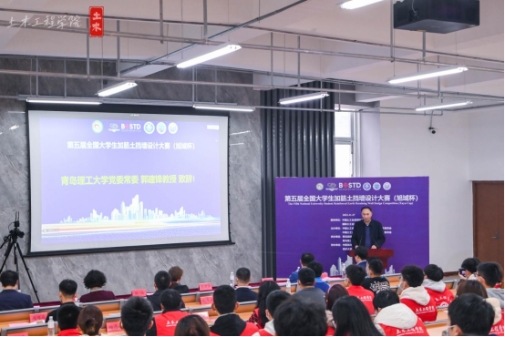 郭建锋代表学校致开幕辞,他对参加此次大赛的老师们、同学们和企业界的代表们表示热烈的欢迎,对中国土工合成材料工程协会、青岛旭域土工材料股份有限公司对大赛的支持表示衷心的感谢。郭建锋简要介绍了学校的办学情况,希望同学们珍惜此次大赛机会,沉着思考,冷静奋战,把专业课的知识积累转化为比赛的精彩表现,在大赛中取得佳绩。