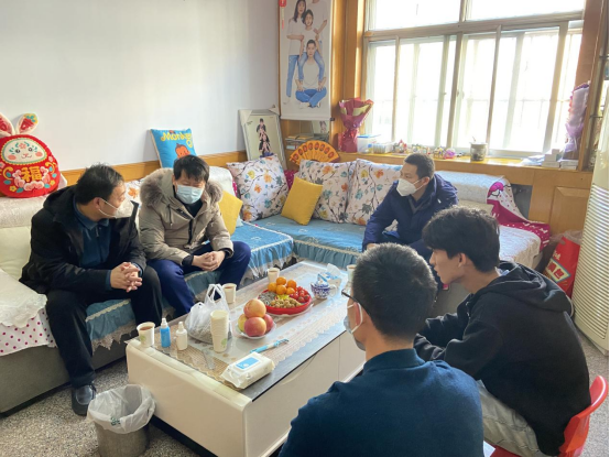 侯东帅围绕学生的假期学习情况和在校期间的学习、生活状况与学生和家长展开了细致的交谈,针对此次学生离校返乡时间较早、寒假时间较长的情况,建议学生继续保持在校期间的良好作息习惯,寒假期间“不停学”。在与其中一位学生沟通过程中,了解到该名学生对自己所学专业有详细了解和准确定位,但对自身今后的发展方向存在疑虑,侯东帅对学生给予了充分肯定,并在此基础上结合学院的师资队伍情况和学科建设情况,鼓励学生不断学习,继续深造。邵先锋针对学生特点对大学四年的学习生活提出了具体建议。