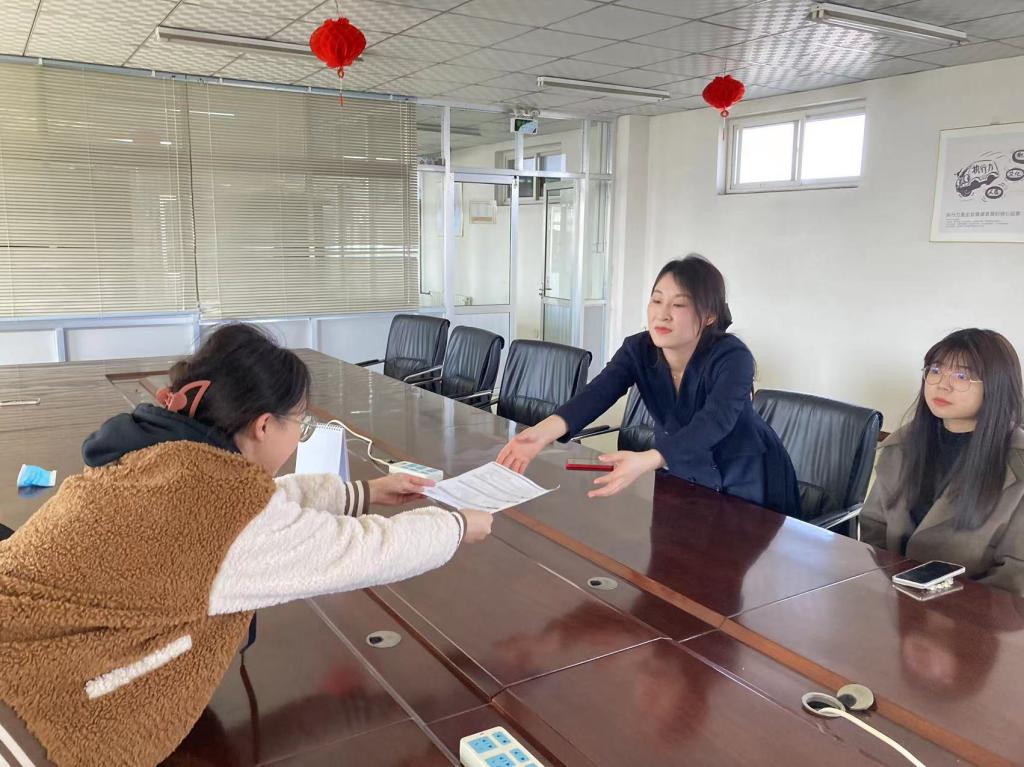 “老师,我觉得这个公司挺好的,我想问问什么时候能面试啊”,小马偷偷地跟就业辅导员贾老师说着悄悄话。管经理听见了,立马回复说,“稍后就能现场面试”,并逐一解答了公司对外贸岗位人才的具体要求、未来发展空间及薪酬待遇等问题。