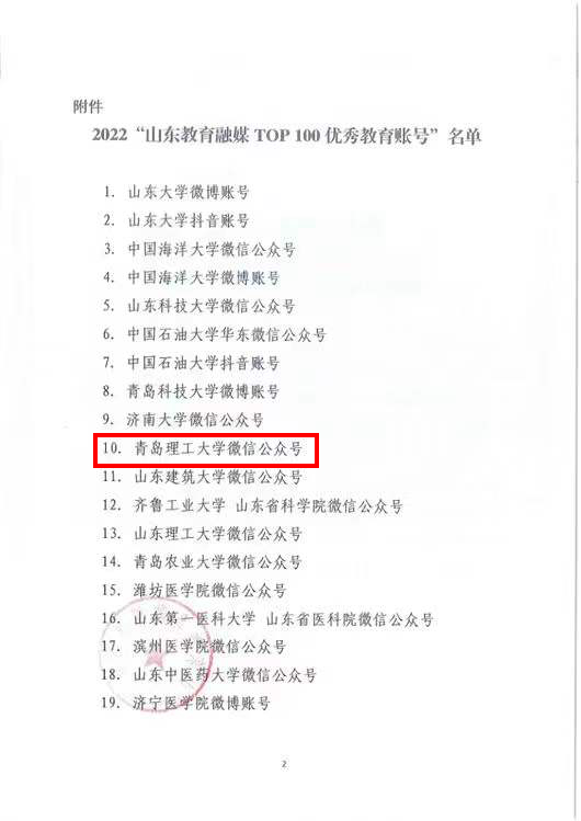 近日,山东教育融媒体联盟公布了2022“山东教育融媒TOP100优秀教育账号”推选结果,“365完美体育”微信公众号入选。
