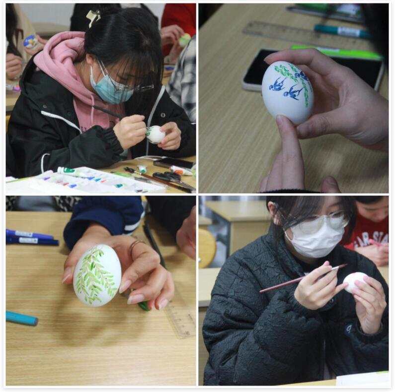 立蛋庆春“树目标”。为鼓励同学们砥砺奋进、快乐生活,不负春日好时光,在建筑馆314开展了“竖春蛋”活动。活动现场,同学们首先在鸡蛋上围绕春分主题进行自由绘制,小小蛋壳上呈现一片春季盎然的景色。“我画的是一串含蓄待放的花骨朵,寓意春回大地的希望,也寄托我对今后大学生活的新期望”“这是一只北飞的鸿雁,寓意暖春的到来,希望疫情后大学能够更加丰富多彩”现场的同学说道。绘制完成后,同学们用绘制完成的鸡蛋,进行1V1的竖蛋比赛,“之前从没立过鸡蛋,担心自己立不起来,没想到一下就立好了,希望大学生活在春分会有个好的开始。”建学222班的来秋皓说。