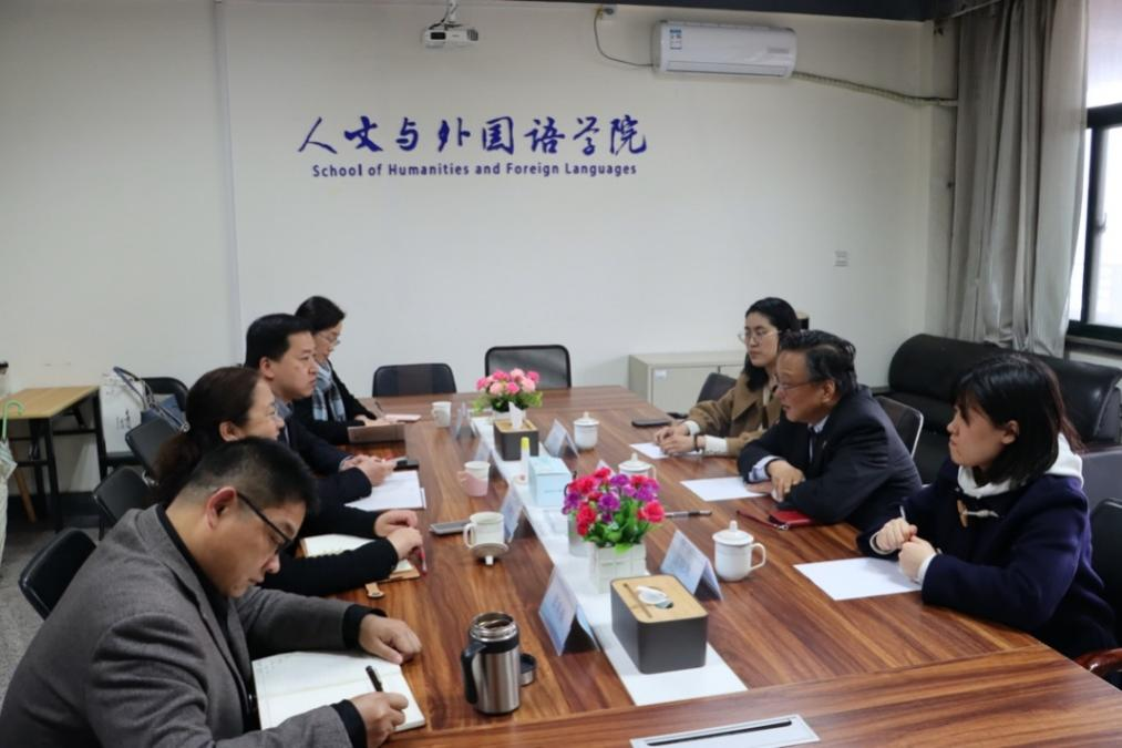 讲座结束后,高伟俊与学院班子成员就今后的国际交流、学科建设、教师交流与合作研究等问题进行了充分交流和讨论。人文与外国语学院将把握时机,拓展学术交流和人才培养的国际化发展路径,推动学院各方面工作发展。(撰稿:王星、莫玉梅、贾舒文;审核:卢新明)