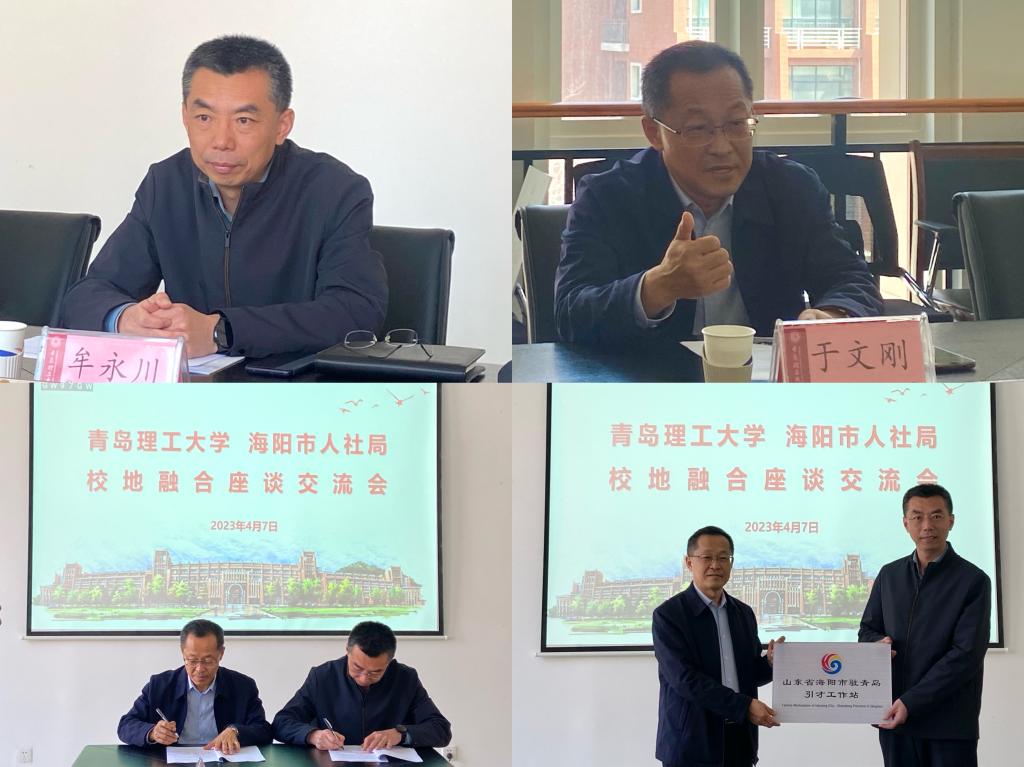 座谈会上,牟永川首先代表学校对海阳市人力资源和社会保障局一行到来表示热烈欢迎,并从学校办学特色、人才培养、2023届毕业生生源分布情况等方面进行介绍。牟永川表示:“政校企三方聚力有利于实现人才、技术和项目的精准供需对接,实现多方共赢。希望通过此次座谈进一步强化校地、校企合作,与海阳市共同走出政校企合作新路子。”于文刚从核电、风电、航天等海阳市国家战略发展重点项目情况、人才需求、人才政策等方面介绍了海阳市产业发展状况,并提出依托学校和企业资源优势开展深入合作,吸引学子们来到海阳创新发展,共同打造城市与人才高质量发展“共赢”之路的衷心期盼。热切交流过后,双方就加强人才引进工作、开展深度交流合作达成了共识,签署海阳驻365完美体育引才工作站协议并进行授牌。