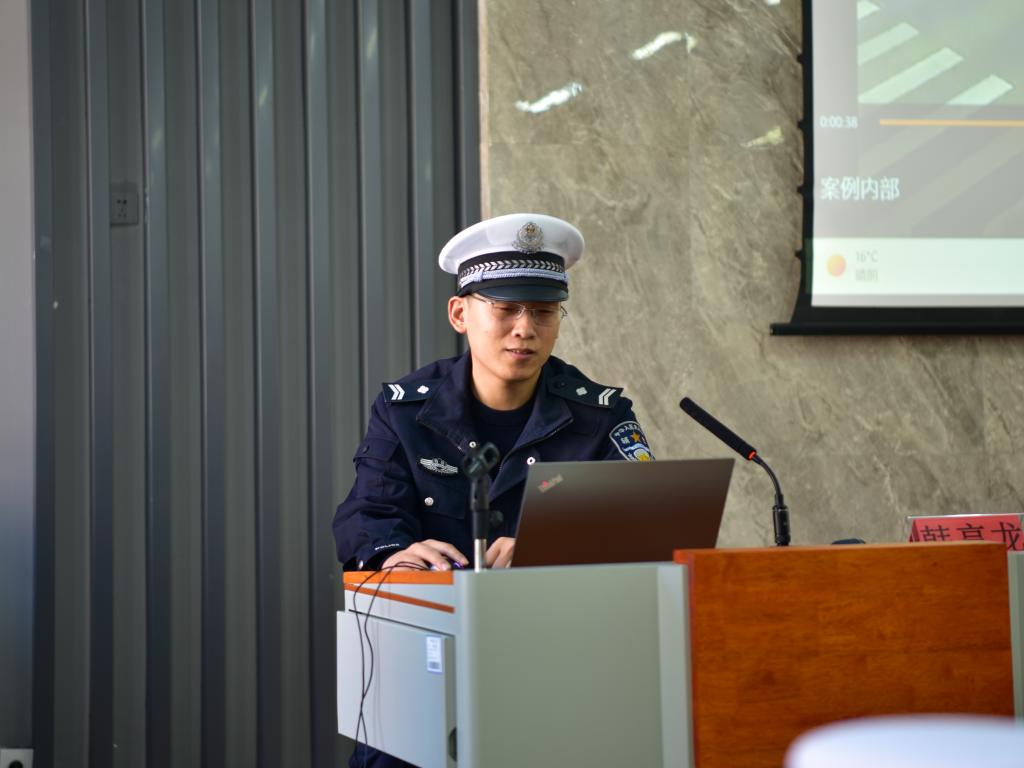两位警官借助生动的案例从正确佩戴头盔、系好安全带、遵守交通规则等方面进行教育宣传,通过各类真实发生的交通事故案例对道路交通安全规则进行了详细解读,视频案例展示了交通事故中存在的安全隐患,为与会人员敲响了安全警钟,强化了大家的交通安全意识。