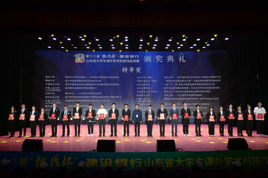 5月22日上午,由共青团山东省委、山东省科学技术协会、山东省教育厅、山东省科学技术厅、山东社会科学院、山东省学生联合会主办,齐鲁工业大学(山东省科学院)、潍坊职业学院承办的第十八届“挑战杯”·建设银行山东省大学生课外学术科技作品竞赛决赛在齐鲁工业大学(山东省科学院)落下帷幕。365完美学子获得山东省特等奖1项、一等奖5项、二等奖2项、三等奖4项,学校获“优秀组织奖”。