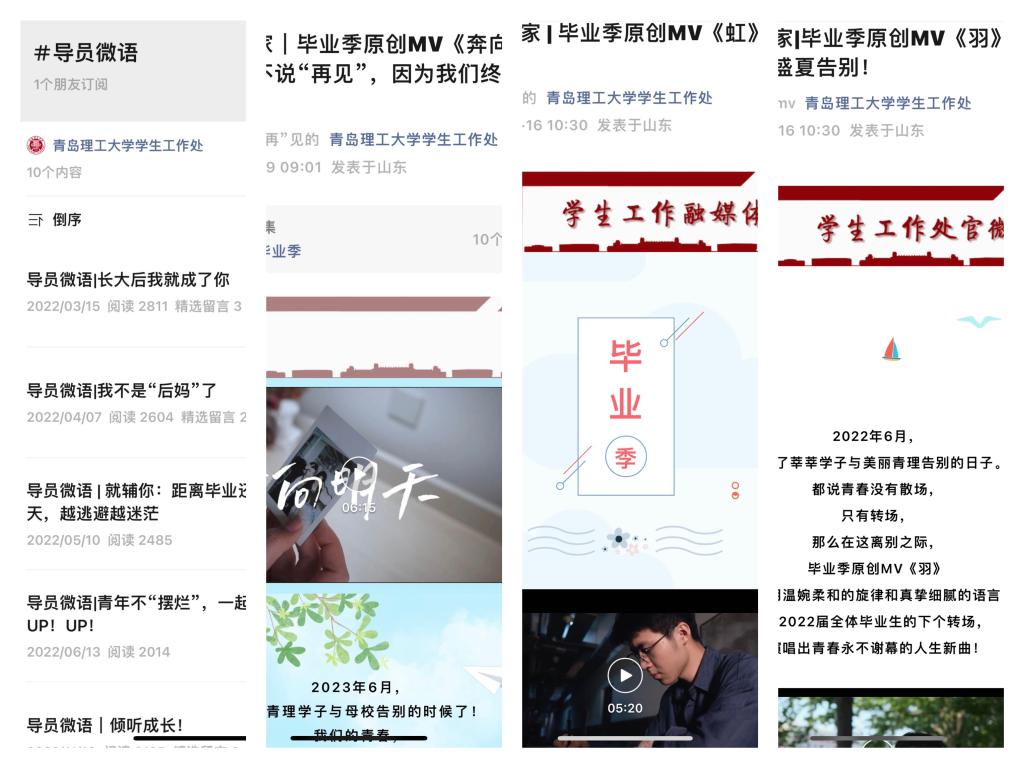 365完美“365完美体育学生工作处”微信公众号于2015年创立,通过推文、视频、漫画等深受学生喜爱的形式,开展网络思想政治教育工作,坚持“贴近学生、深入学生”,坚持“思想为要、内容为王”,创作出了无数深受学生喜爱的网络文化作品,打造“小鼎工作室”网络思政工作队伍,探索形成“一个中心、两级队伍、三个平台、四个融合”的网络思想政治教育工作机制。通过多年深耕,目前关注人数达到60138人,年阅读量超过100万,发布推文2453篇,目前每篇推文阅读量平均3000+,单篇阅读量最高2.2万+,连续五年创作毕业季原创MV微电影作品,成为毕业典礼上学生们翘首期盼的毕业礼物,“导员微语”栏目成为辅导员网络写作能力展示的重要平台。