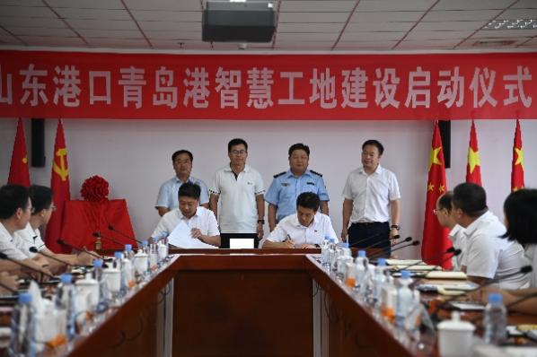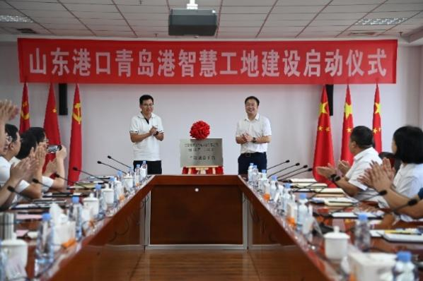 8月24日,山东港口青岛港建管中心“智慧工地”建设启动暨“产教融合平台”揭牌仪式隆重举行,西海岸新区交通运输局港航服务中心党支部书记杨天学、山东港口青岛港集团党委委员邢东亮、青岛港建设管理中心有限公司总经理王正喜、土木工程学院党委副书记邵先锋、副院长刘俊伟等出席揭牌仪式。