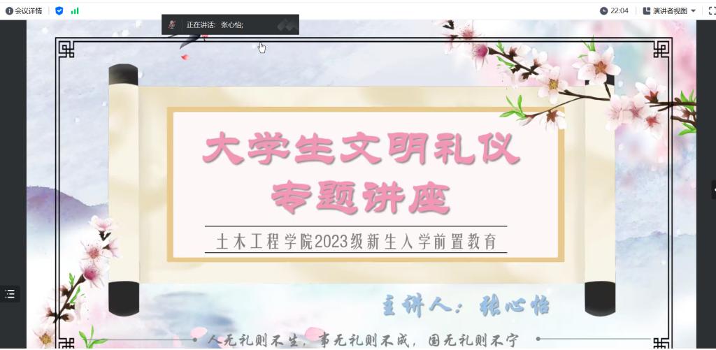 一场内容丰富、美感十足的有礼教育带给新生全新认知。人无礼而不生,国无礼则不宁。我国是一个文明礼仪之邦,从入学之初就学会如何规范自己的行为,把个人修养引向更加优雅的境界,学会更加谦逊、明理、尊重他人,对全面提升大学生综合素养大有裨益,有助于校园文明建设可持续发展。