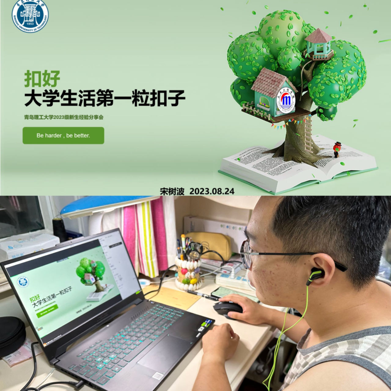 “这封信和班会所讲,我很认同。原以为孩子上大学了,我就可以松口气了。现在的我思想转变了,开始了解孩子所学专业和发展前景,希望与学校共同努力帮助孩子成长。”周义翔的家长全程旁听后说。