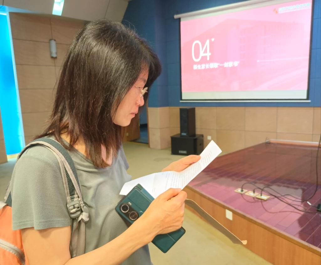 家校“零”距离,化解入校“忧疑难”。为加强家校联系,报到日当天召开新生家长见面会,学院领导、各系主任、各办公室主任、全体辅导员、新生班主任与家长面对面交流,向新生家长分发提前收集的新生们给家长的“第一封家书”,一封封信件承载了建院2023级新生们对家长的不尽感激之情。