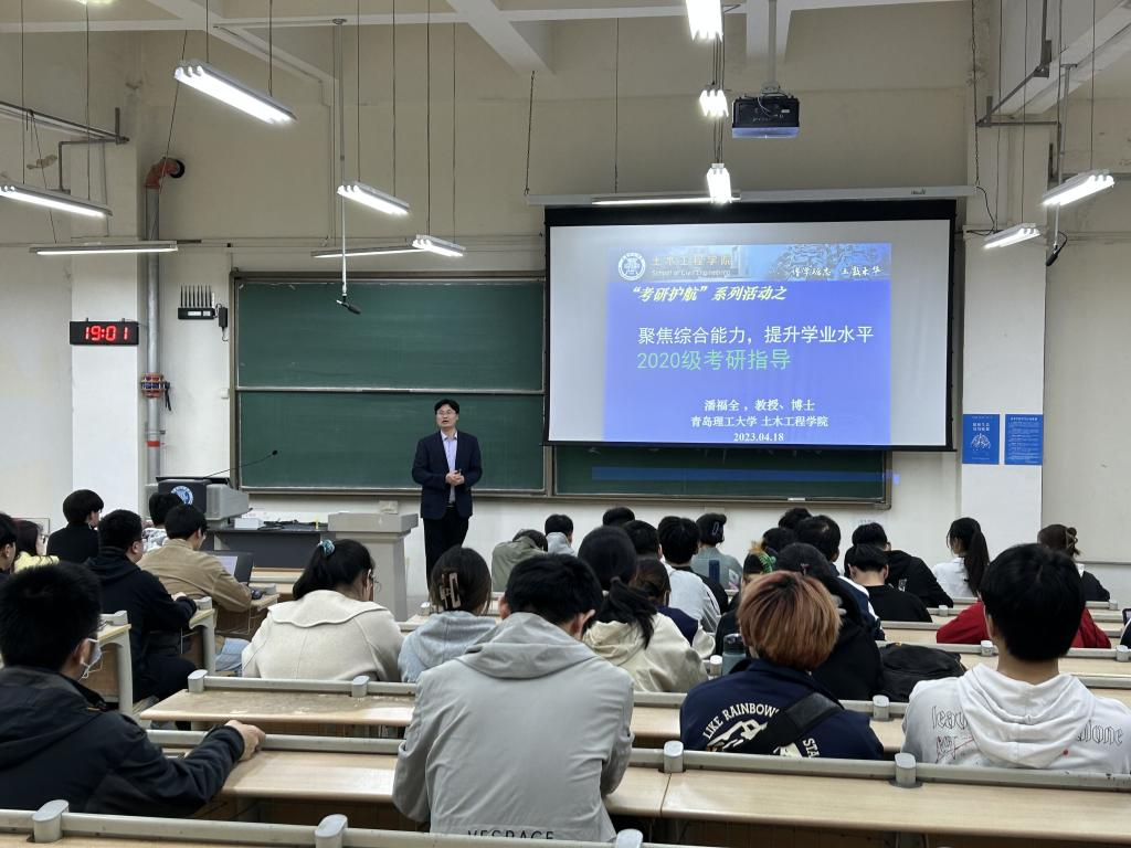 学院定期开展“考研护航”系列讲座,及时为考研学子们答疑解惑。2020级考研指导第一期讲座由学院副院长潘福全教授主讲,他围绕考研形势变化、怎样复习备考、如何选择所报考的学校及专业等方面展开讲解,介绍了学硕和专硕的区别,学院硕士点的基本情况、相关专业考研院校动向。他耐心解答同学们提出的问题,鼓励大家要坚定信心,持之以恒,定能上岸。考研护航指导讲座使同学们对当前考研形势及学校、专业选择有了清晰了解,有助于学生坚定考研信念,提升考研信心。下一步,学院将陆续开展“考研护航”报考指导、心理疏导等系列讲座。