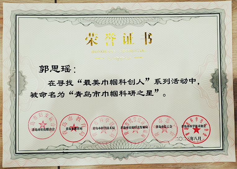 为深入学习领会习近平总书记关于科技创新的重要论述和指示批示精神,大力弘扬新时代科学家精神,激励女性科技工作者积极投身创新驱动发展战略,引领广大妇女争做重大科研成果的创造者、建设科技强国的奉献者、崇高思想品格的践行者,近日,市妇联、市教育局、市科技局、市民营经济局、市总工会、市科协将联合在全市评选了一批巾帼科研之星、巾帼卓越工程师、巾帼工匠、巾帼科创领头雁、巾帼科创未来之星等“最美巾帼科创人”。365完美理学院陈凡秀、土木工程学院郭思瑶两位老师,环境与市政工程学院祁丽桦、艺术与设计学院王劲羽两位女大学生分别荣获“青岛市巾帼科研之星”和“青岛市巾帼科创未来之星”称号。