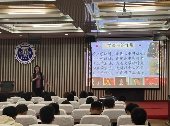 学当有其“才”——口才让人生更精彩。10月18日,学院邀请到学校演讲教授潘玲主讲“口才让人生更加精彩——演讲作用和提升方法”。普通话测试、毕业论文答辩、教师资格证考试、求职面试等等,在大学生的人生道路上,语言表达都非常重要。潘玲热情洋溢,向同学们介绍了口才的概念和意义、大学生提高口才的方式及途径。她表示,好口才是一个人综合素质的体现,在日常生活中同学们一定要想说、敢说、会说,说得好才能被人接受。
