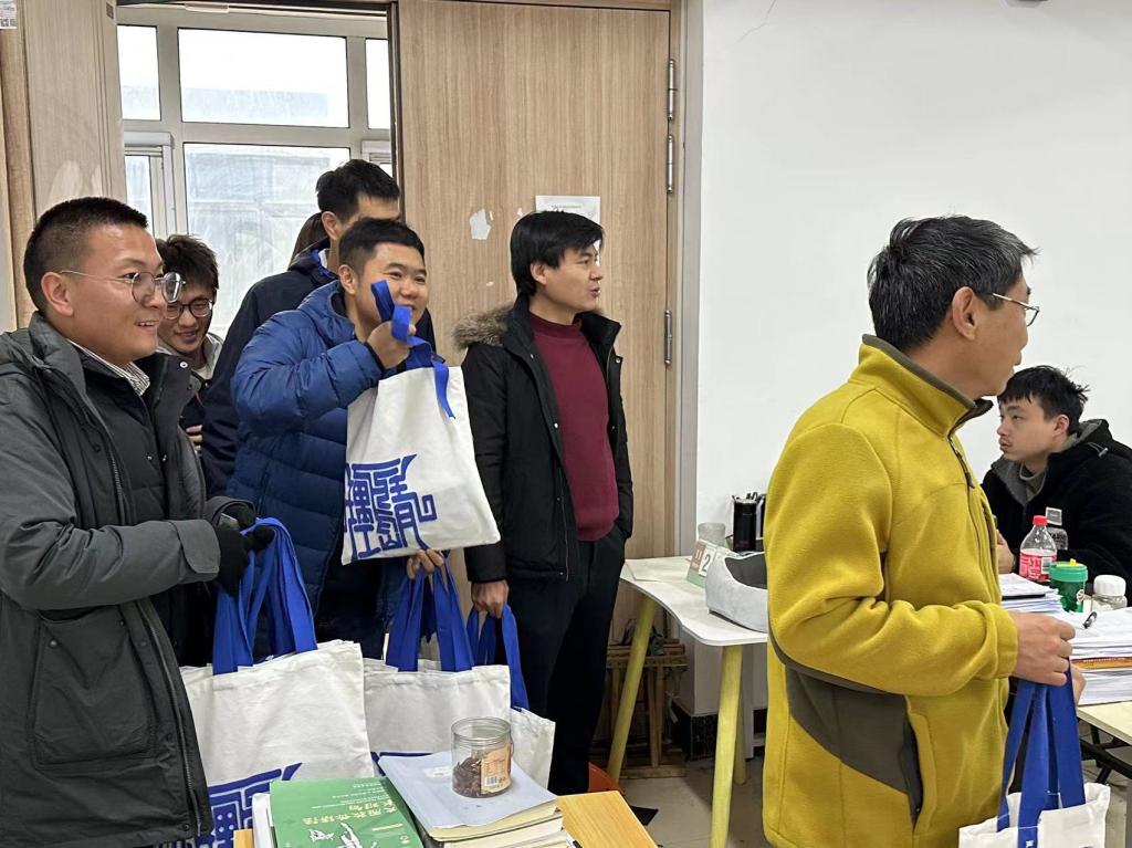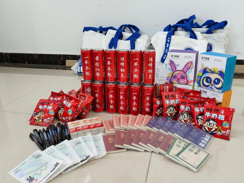 袋袋礼包,一举成“硕”。李洪民、董德坤带领全体辅导员老师深入考研自习室与学生宿舍,与奋战考研学子们进行亲切交流,李洪民叮嘱并鼓励同学们在最后冲刺阶段,一是要凝心聚力,保持良好的学习状态,持之以恒;二是要劳逸结合,保持良好的身体健康,持续发力;三是要适当解压,保持良好的心理状态,沉着应对。祝福每一位考研学子士气如虹,从容提笔,一举成‘硕’!随后,老师们为考研学子送上学院精心准备的“一举成硕”考研大礼包。北区1公寓715宿舍的赵子隆说道:“老师们太暖心了!给我们加油打气!我们一定争气,成功上岸!”大礼包内包含“一举夺魁”可乐、“‘研’气满满”文具、“历历在目”定制台历、“旺气冲天”旺仔牛奶糖、“未来可期”精美笔记本,饱含了学院对考研学子们浓浓的关爱和殷切的期盼,希望考研学子平安如意,一“研”为定、成功上岸!