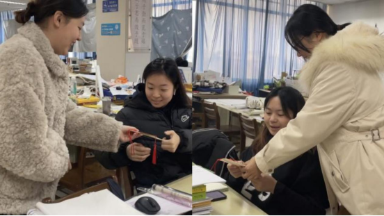 祝福信笺,温情护航。毕业生辅导员张铎、郑润琪走进考研自习室,为同学们送上学院专属祝福书签,鼓励他们保持良好心态,抓住机会,迎难而上,经过厚积薄发地沉淀,最终一战成“硕”。“在紧张的学习之余收到了老师们送来的温暖,这份牵挂让我非常感动,坚定了我加油冲刺、考出好成绩的信心!” 建学193班张广源同学说。