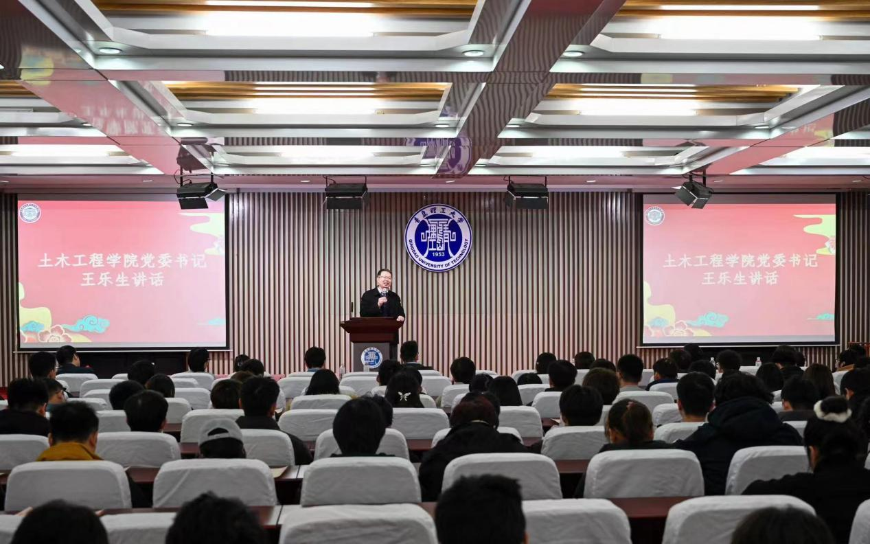 王乐生在讲话中首先对陈国平先生、烟台建设集团、环球集团在学院设立奖学金表示衷心感谢,向受到表彰的同学表示祝贺。他指出,一所高校的校风和学风,犹如阳光和空气决定万物生长,直接影响着学生学习成长。好的校风和学风,能够为学生学习成长营造好气候,创造好生态。土木工程学院党委行政高度重视学风建设,抓早、抓紧、抓实、抓细,抓出效果。他强调,优良的学风感染人、塑造人、成就人,是高等学校的立校之本、发展之魂,优良的学风能提升同学们自主学习严于律己的内生动力,从而营造出崇学、向学、竞相出彩的浓厚氛围,又反哺学风建设。土木工程学院将持续坚持“三全育人”建设,抓好师德师风,以优良教风带动优良学风;将坚持严格管理,五育并举,注重学生综合素质的培养,实现德智体美劳全面发展;将常抓不懈,坚持学风建设。他勉励同学们奋勇争先,积极践行“博学砺志、土敦木华”的院训精神,树立远大理想,做有志青年;勤奋刻苦学习,做有才青年;不惧挫折困难,做有为青年。
