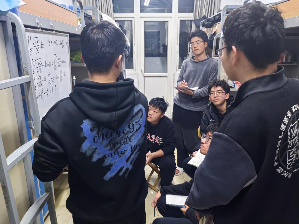 “白板黑板”用处妙,移动讲师很厉害。进入期末备考以来,“小白板”和“小黑板”成了理学院宿舍的“畅销品”。在学院团委的倡议下,学院各年级各班级都组建了自己的学风帮扶小组,班内学霸在宿舍和大家一起讨论课程学习掌握程度,对课程知识点中有疑问的地方引入具体题型具体分析再讲解。“小白板”和“小黑板”也成为了同学们自发、互助学习的最好载体,让宿舍、活动室都变身为学习阵地,实现学风帮扶的渗透化、日常化。