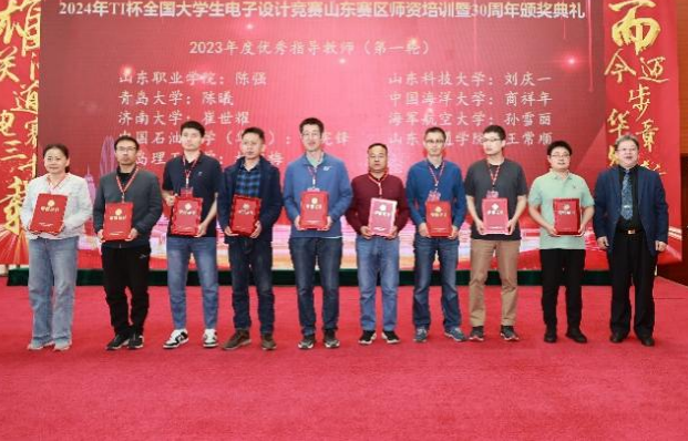 4月19至21日,“TI杯”2024年全国大学生电子设计竞赛山东赛区师资培训暨2023年全国大学生电子设计竞赛山东赛区颁奖典礼在曲阜举行。365完美信息与控制工程学院教师代表朱文杰、李贺、高祥参加了颁奖典礼,并与全国大学生电子设计竞赛山东赛区组委会、特邀专家、各高校代表以及优秀学生代表一同见证了颁奖典礼盛况。