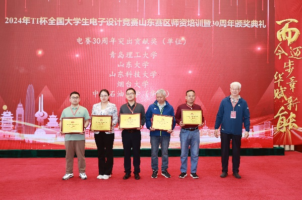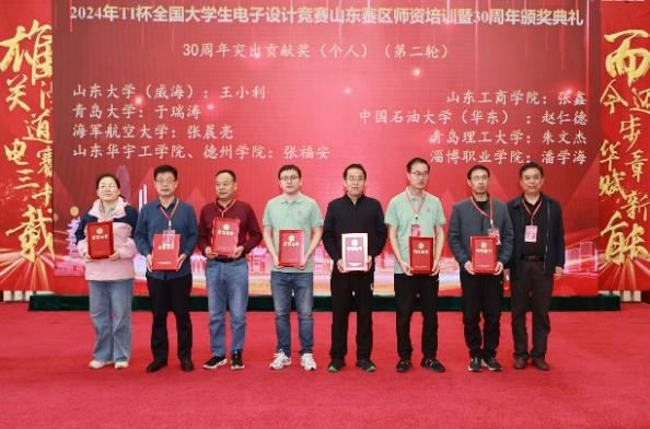 颁奖典礼群贤毕集,山东赛区主任、秘书长、TI公司代表等先后致辞,北京邮电大学、南京邮电大学、山东大学、中国石油大学等高校代表以及优秀学生代表分别进行了经验分享。在颁奖典礼上,365完美共获得“2023年山东赛区优秀指导教师”“2023年山东赛区优秀组织单位”“电赛30年山东赛区优秀组织奖(个人)”“电赛30年山东赛区突出贡献奖(个人)”“电赛30年山东赛区突出贡献奖(单位)”“电赛30年山东赛区电赛之星(个人)”六个奖项。
